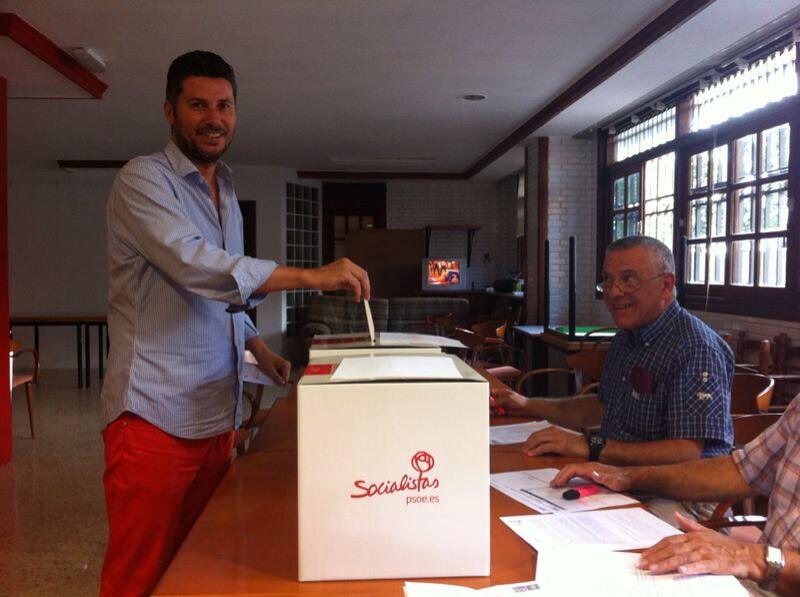 Imatge del facebook de Víctor Borrás, secretari local dels socialistes de Tavernes, al efectuar el seu vot a Madina.